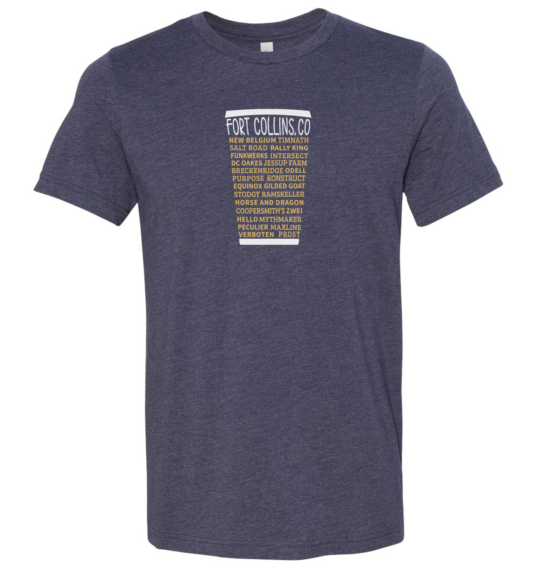 Fort Collins beer t shirt featuring a list of local breweries. Soft, lightweight, and perfect for craft beer lovers and locals.