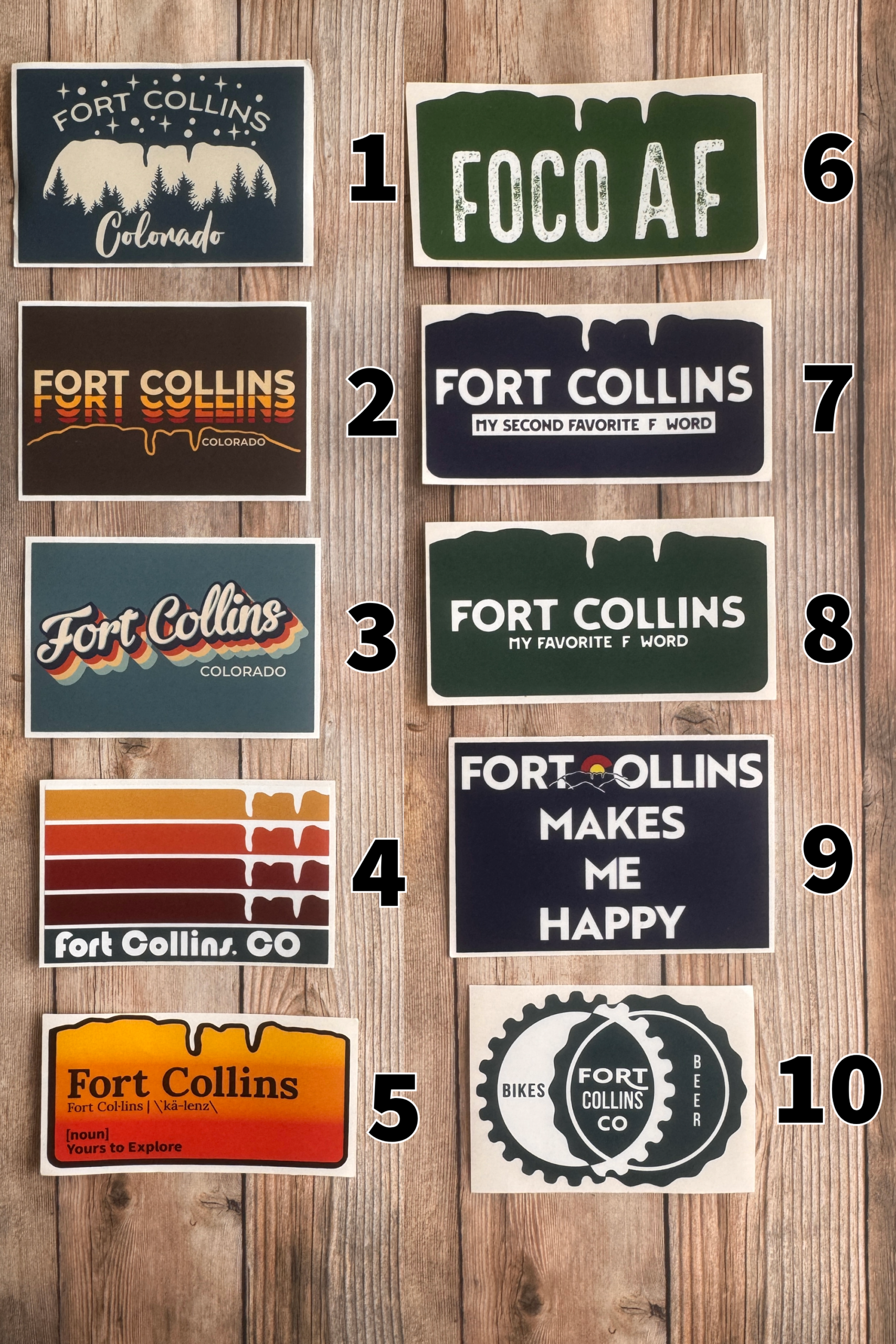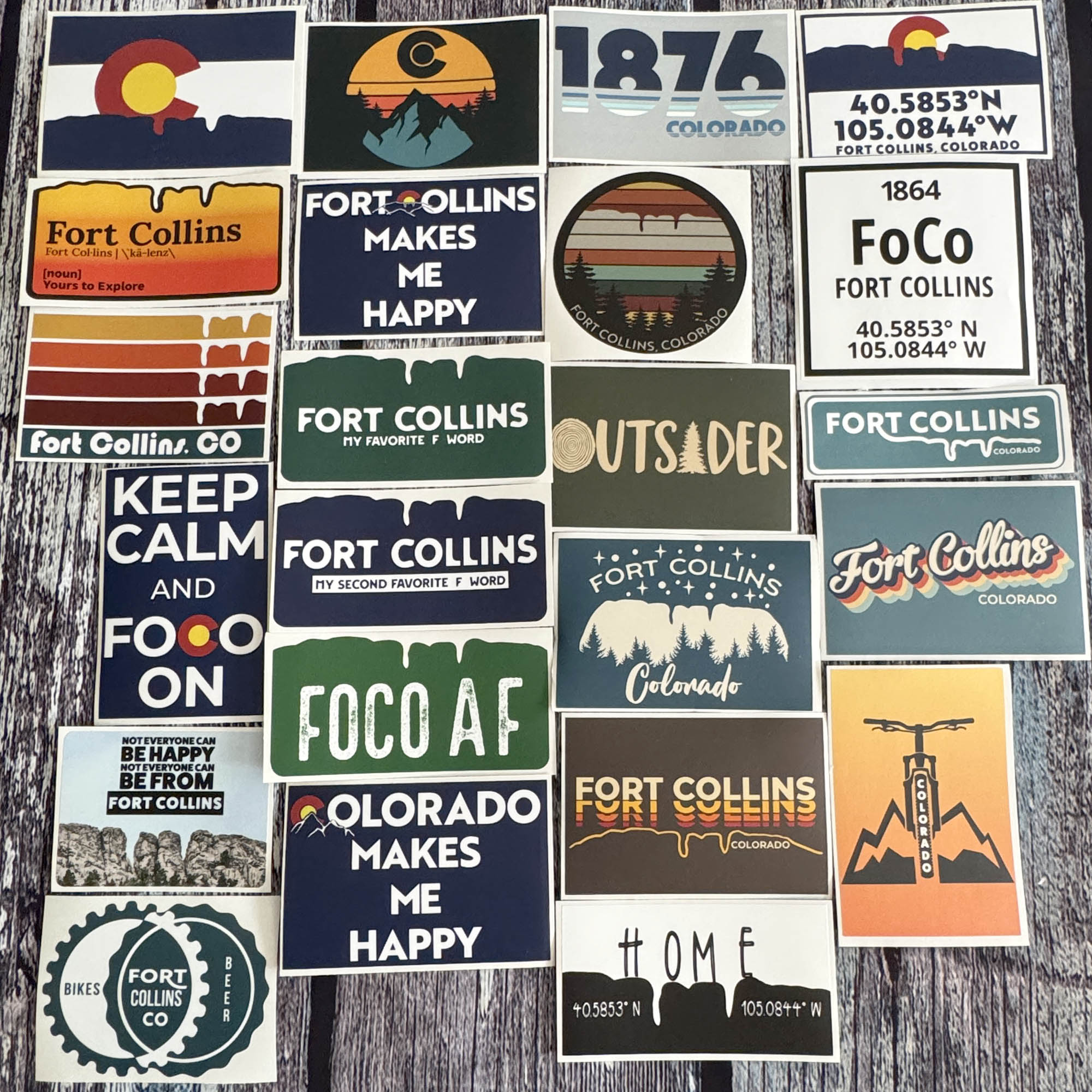 Fort Collins weather resistant stickers! Designs shows the iconic Horsetooth Rock and other FoCo images and facts. Show off your love for Fort Collins.