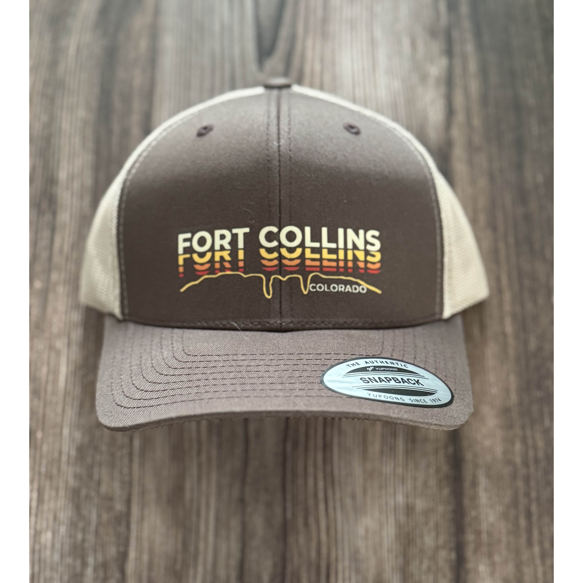 Made on a high quality snapback with a structured front and breathable mesh back, the Sundown Hat is comfortable from morning coffee runs to late patio nights. The adjustable snapback closure offers an easy fit for most head sizes, making it a go to option for locals, visitors, and anyone who wants to rep Fort Collins in a subtle, stylish way.