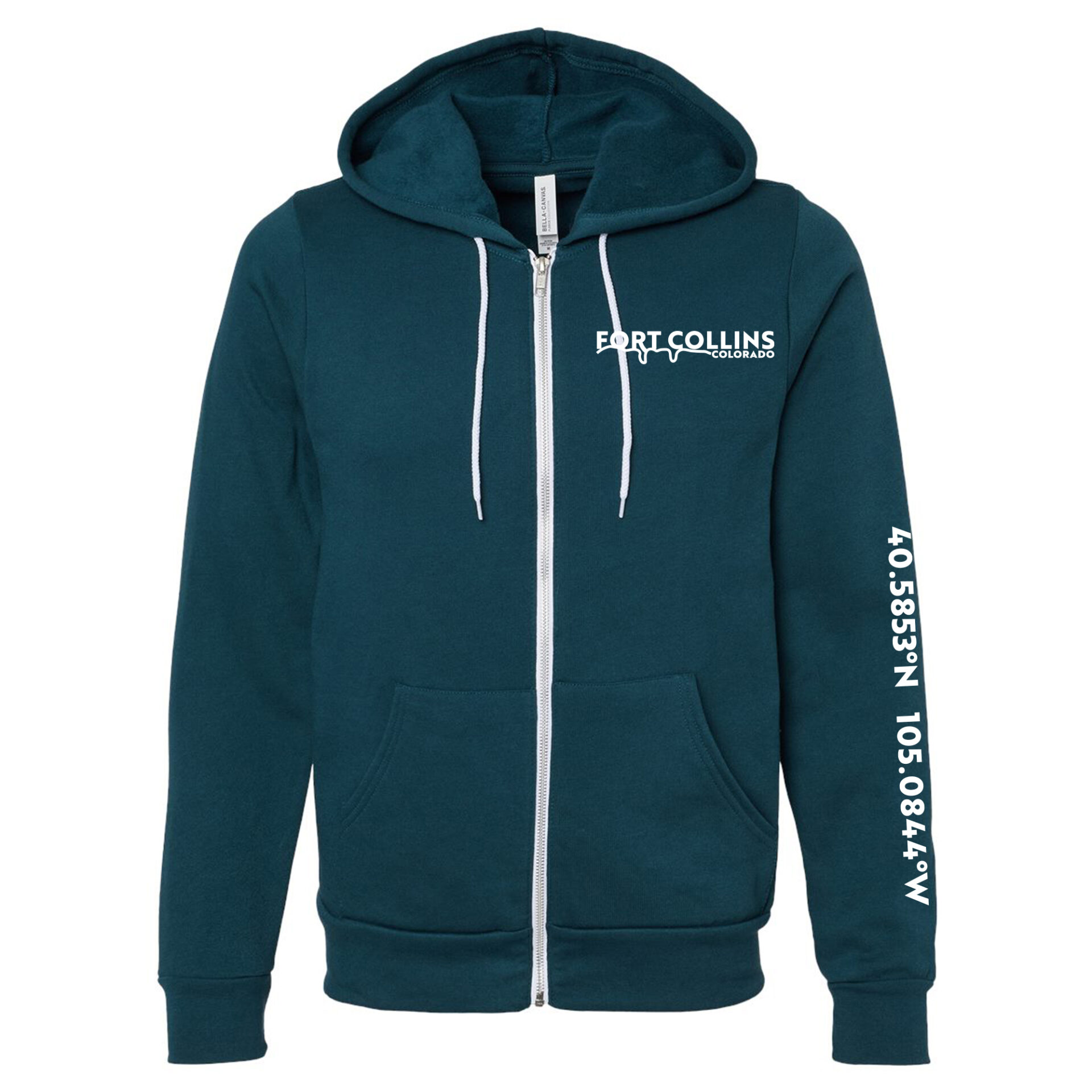 The Coordinates Hoodie celebrates Fort Collins with its sleek design and sleeve coordinates. Soft fleece, full zip, and a unisex fit make it your go-to layer year-round.
